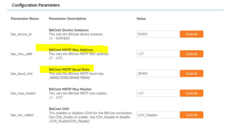 Changing the Mac Address, Baud Rate, Device Instance, and Bacnet IP address for the CAS BACnet Gateway: