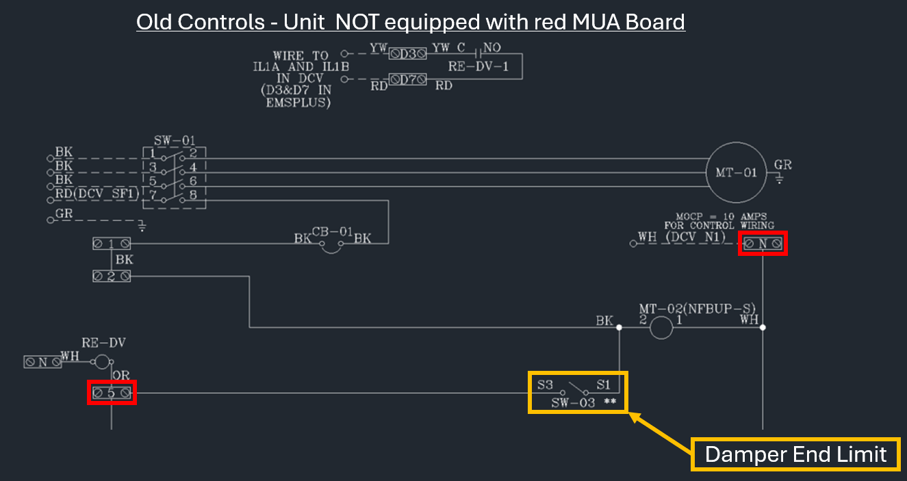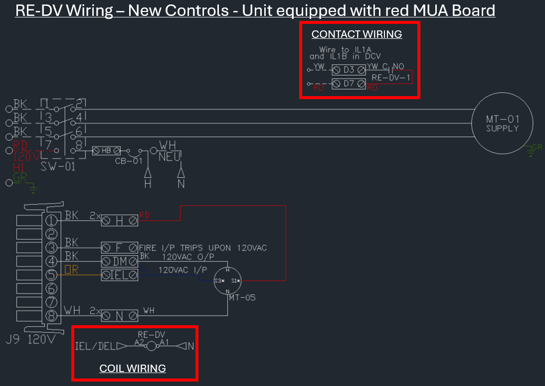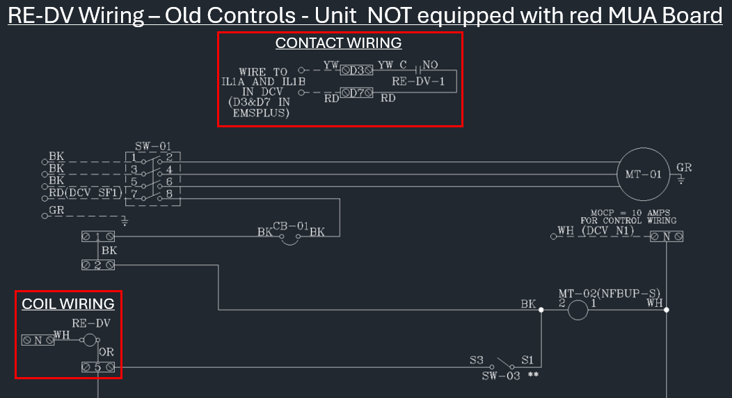 Makeup air units designed to be interlocked with the ECP will be equipped with the RE-DV relay regardless of if they were built with old style or new style controls.