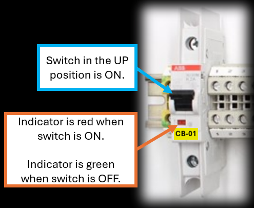 - The circuit breaker (CB-01) switch should be UP and displaying a red indicator.