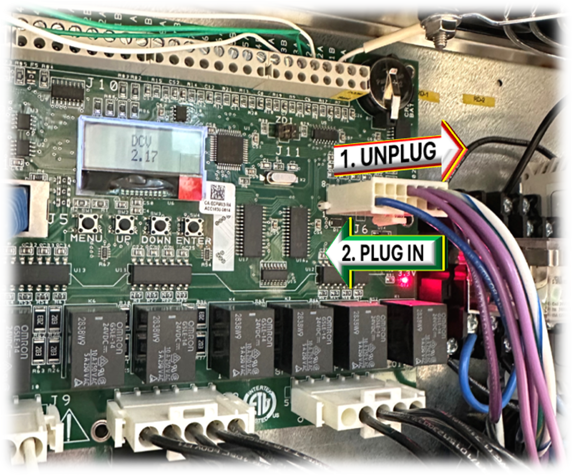 - Unplugging J6 will temporarily turn the lights and fans off if they are on.